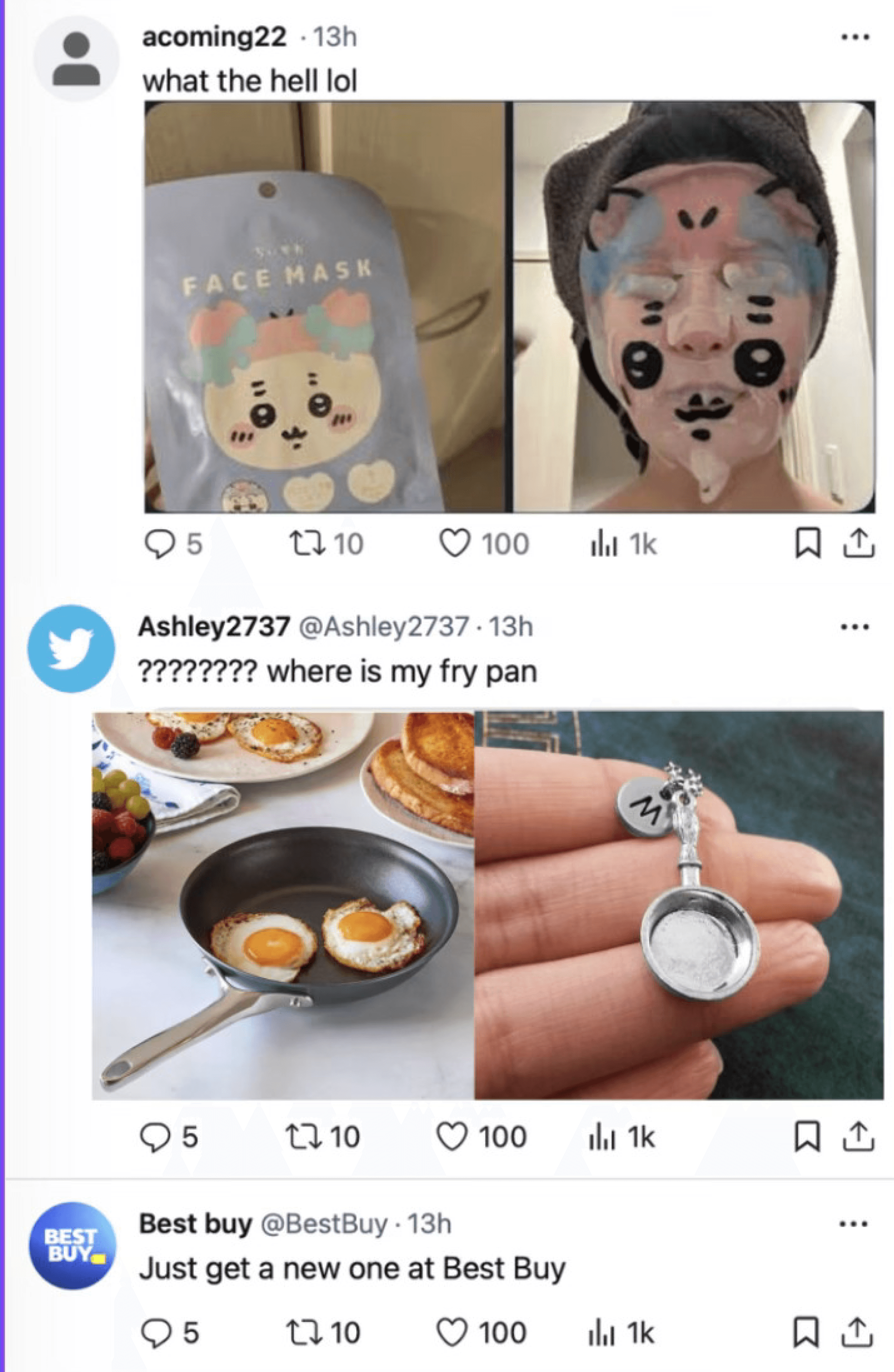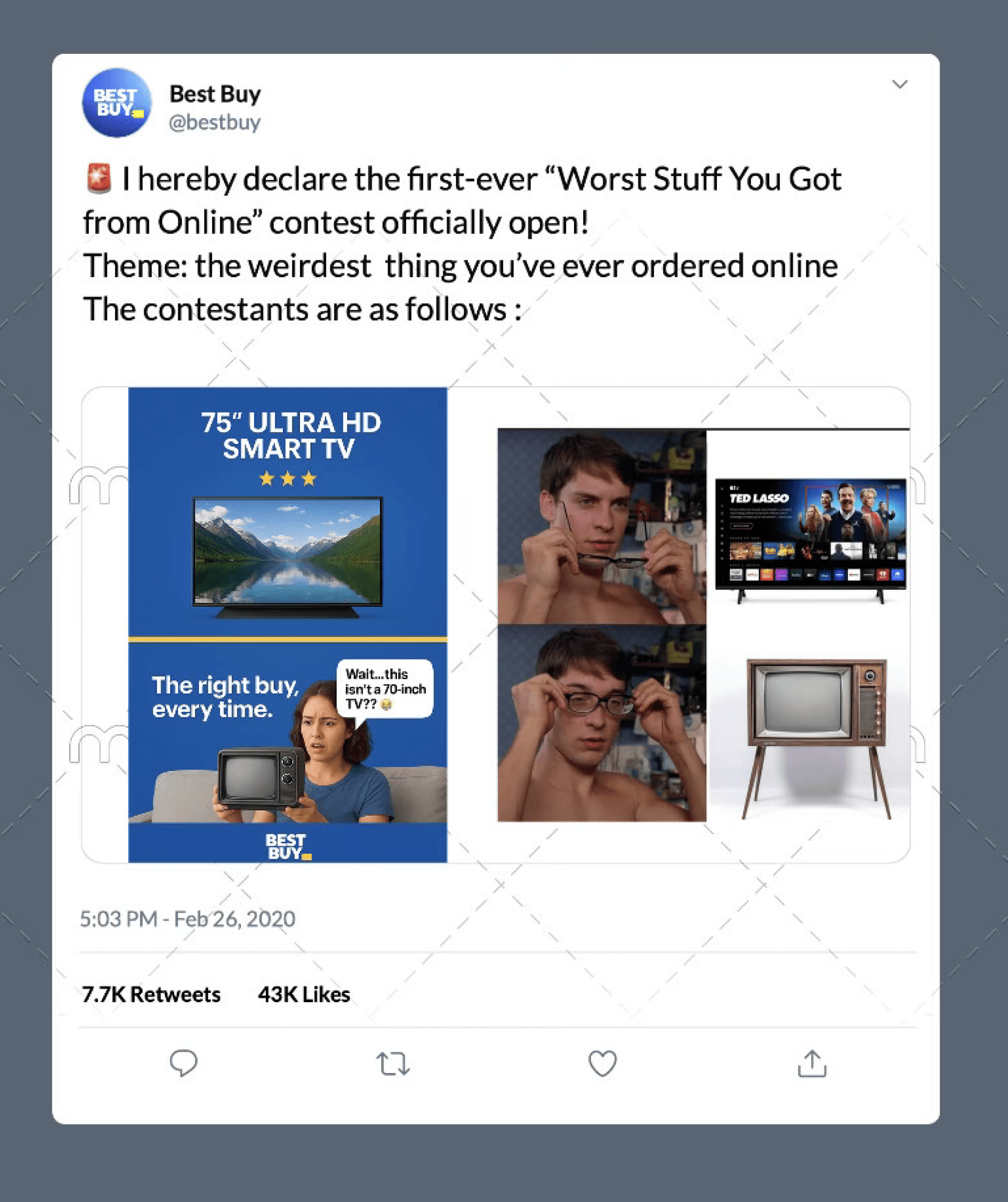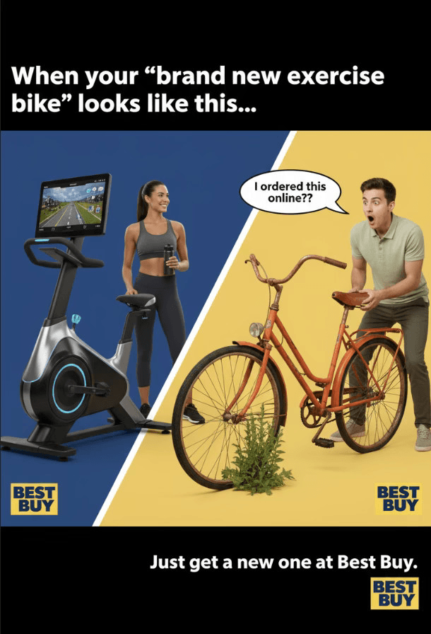 This social media ad campaign from Best Buy uses humor and memes to connect with Gen Z audiences on Twitter, a platform known for its interactive and viral culture. The ad invites users to join a playful contest about “the worst stuff you got from online,” encouraging them to share funny or relatable experiences of disappointing online purchases. By featuring meme-style visuals and user-generated responses, the campaign builds a community-driven conversation that highlights real consumer frustrations while positioning Best Buy as the smarter, more reliable shopping choice. The meme format and interactive nature make it engaging, shareable, and perfectly suited to Gen Z’s sense of humor and online habits.