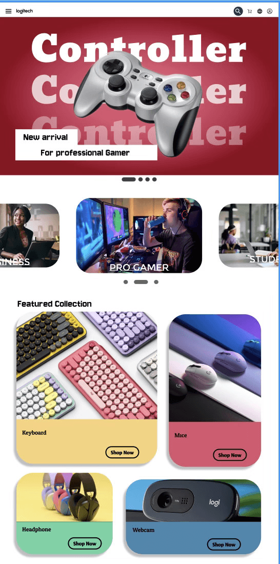 This project is basic on my friend, an energetic Steam gamer who loves upgrading her setup with new mice, keyboards, and headphones, and often buys tech gifts for her many gaming and working friends. She enjoys browsing Logitech products online but feels the homepage doesn’t show enough variety, making it harder to quickly discover items or gift ideas. Emily expects a smooth, colorful, and engaging shopping experience that highlights gaming gear, work essentials, and curated gift suggestions. As a social, active user, she wants Logitech’s website to feel exciting while still making it easy to explore, compare, and purchase products for herself and others.